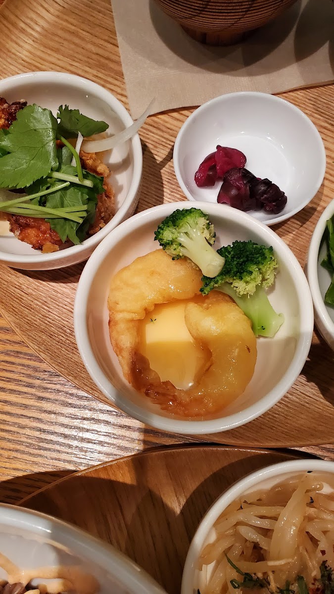 Cafe Yusoshi Chano-ma Ueno prides itself on delivering meals that are not only delicious but also refreshing and health-conscious. Their デリごはん (Deli Rice) sets are particularly popular, allowing you to choose from an enticing selection of small dishes. Opt for the 選べるおかずのデリごはん〈小鉢3品〉 for just JP¥1,550, where you can curate a trio of delightful small dishes that reflect your mood. Or go for the 選べるおかずのデリごはん〈小鉢4品〉 at JP¥1,800 for an even broader culinary adventure. The choices combine vibrant flavors and textures, with healthful ingredients like purple rice, yuzu kosho karaage, and a medley of fresh salads that make each bite feel as good as it tastes.